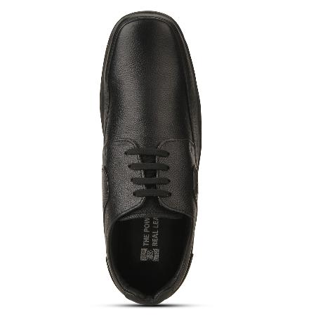 - Create your own mark on the style panel, wearing these black formal shoes from Red Chief. Made from genuine leather, these shoes are compact and stitched for a handsome touch of style and ensure a durable, professional look. The padded PU sole of the shoes will ensure your comfort and supportive grip throughout the day. Pair these shoes with your favorite attire for a flawless look.